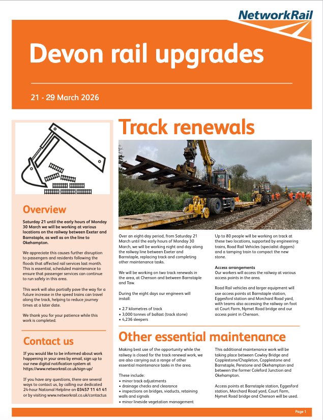 Thanks to Tony Hill for this image of the Okehampton Interchange worksite, apparently heading for a Spring 2026 completion date. There are details of the plan on the Dartmoor Line website here.