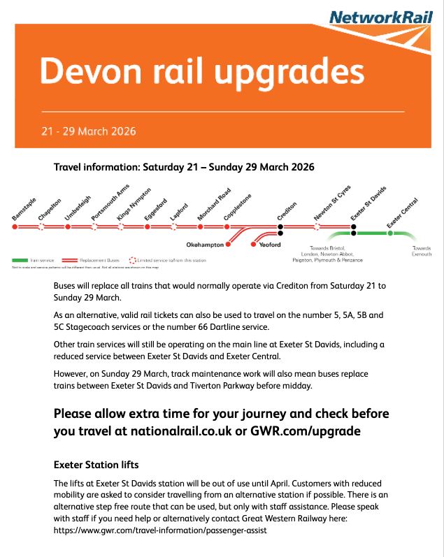 As places are limited, anyone interested must contact Richard Proctor (tel: 01837 811240 or email: richard_proct8@hotmail.com) beforehand. Prospective passengers need to state which train they wish to catch to ensure the bus has enough seats available.